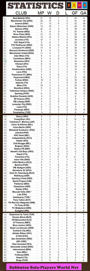 GOLDEN LEAGUE - Club stats :